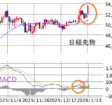 □ テクニカル : 年初からの短期上昇波動は(昨日お伝えしたように)一昨日の52,500円台にて終了。目先の焦点は51,021円に控える「10日線の攻防」→ 下値抵抗帯として機能するなら底打ち反転、割り込むようなら50,500円水準までの一段安が視野に。