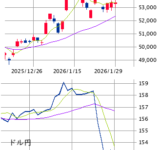 本日の日経平均は急落。日米当局によるドル円のレートチェック & 協調介入(思惑)により先週末東京タイム終値158円台後半から155円台序盤まで下落していたドル円を重石に売りが先行。14時台に52,656円(-1,190)まで下値を切り下げると、引けにかけての戻りも限定的に。ドル円はトランプ政権の多方面での外交トラブル、NY株先物など米国要因も重石に13時台に153.80まで下落。